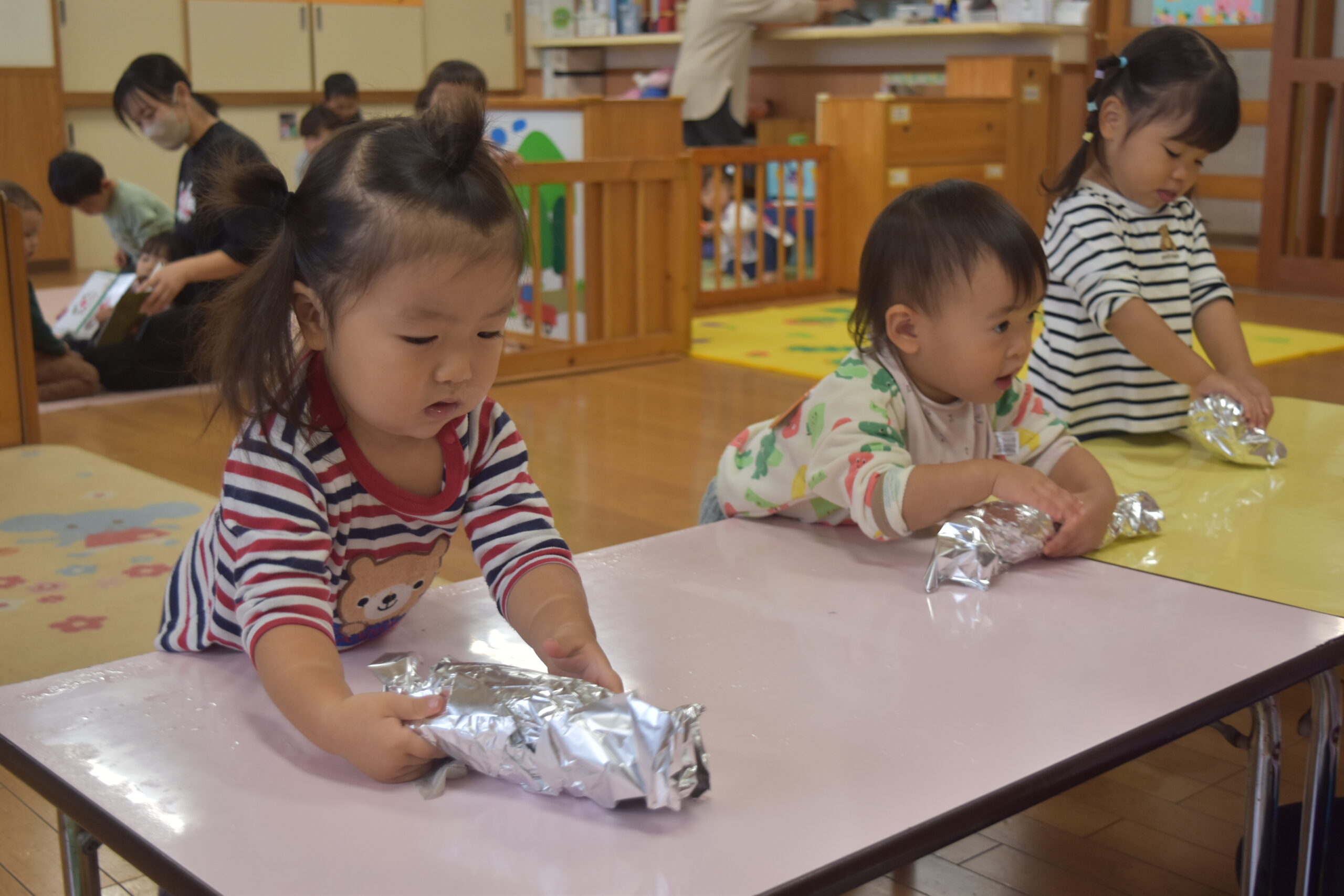 幼児組の子ども達がコバファームで掘ったさつまいもを使い焼き芋をしました。当日は小さいお友達も大きいお友達も上手にさつまいもを新聞紙やアルミホイルで包み、園庭の火の中に投げ込み「美味しく焼けますように」とみんなでお願いしました。焼き上がるとみんな熱がりながらも「美味しい~!」とホクホクの焼き芋を食べていましたよ。